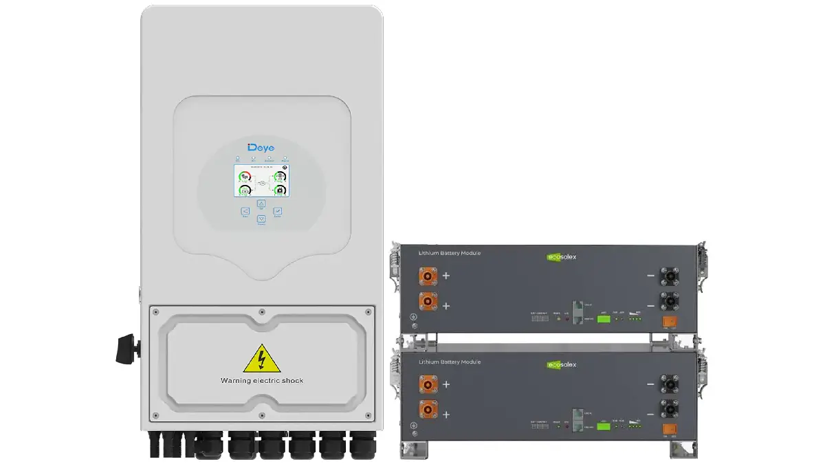 Nasz wybór: System magazynowania energii DEYE SV-1DE6K2-LEC10K1-1 6 kW 10,2 kWh. Doskonały zestaw jednofazowy z falownikiem o mocy 6 kW i dwoma blokami akumulatorów o łącznej pojemności 10,2 kWh. Tego zapasu z nawiązką wystarczy przeciętnej rodzinie, aby przetrwać długotrwałą awarię zasilania. Czas do pełnego naładowania zestawu akumulatorów wynosi zaledwie 1,7 godziny.