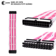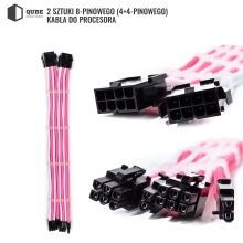 Zestaw przedłużaczy do zasilacza z łączonymi złączami o długości 350 mm. Wykonano je przy użyciu wysokiej jakości nylonowego oplotu w połączonych kolorach (białym i różowym) oraz grubego miedzianego przewodu 16AWG.